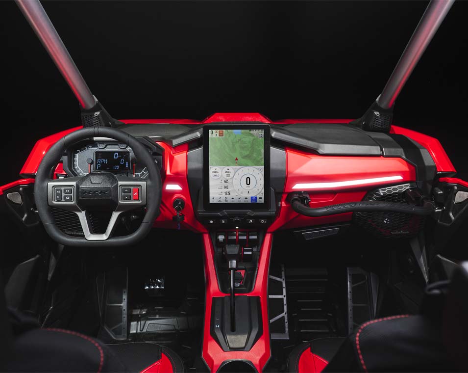 Winning starts from within, and RZR Pro R is no exception. Its interior is meticulously designed with more comfort and convenience, empowering you to ride farther, drive harder and finish in first place.