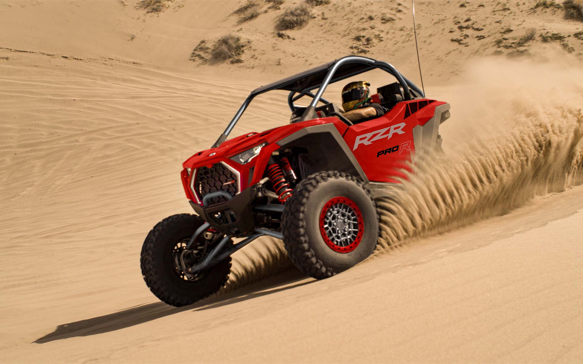Out-thrill them all with an off-road beast designed to dominate. RZR Pro R delivers heart-pounding performance to defy deserts, conquer dunes and break records off road. Never place second again. With RZR Pro R, you always win.