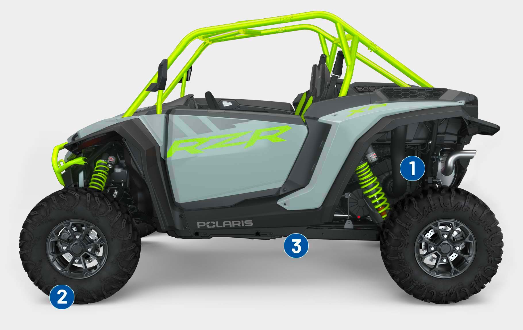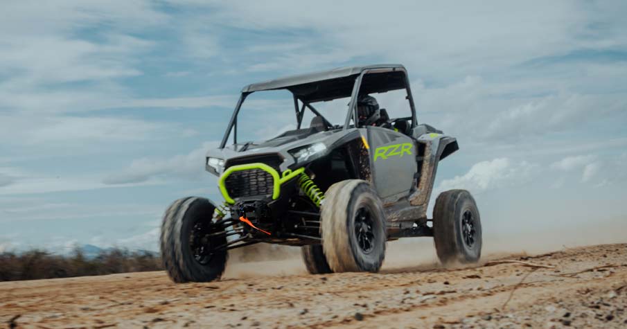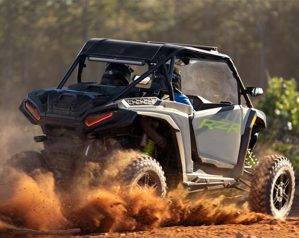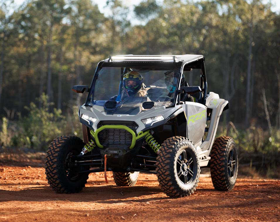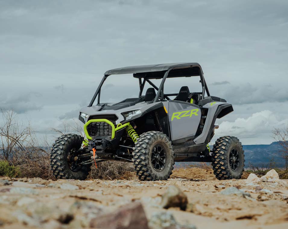 The next revolution of RZR DNA with responsive performance, traction and clearance, and trail agility to take on the off road.
