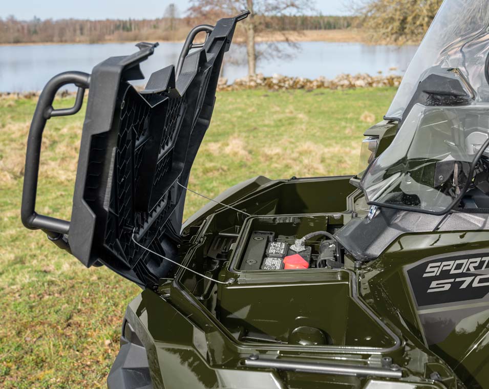 - 12-volt power plug, in-pod trickle charging port, PIN-activated security system (P.A.S.S.), Front rack extender, winch mount included