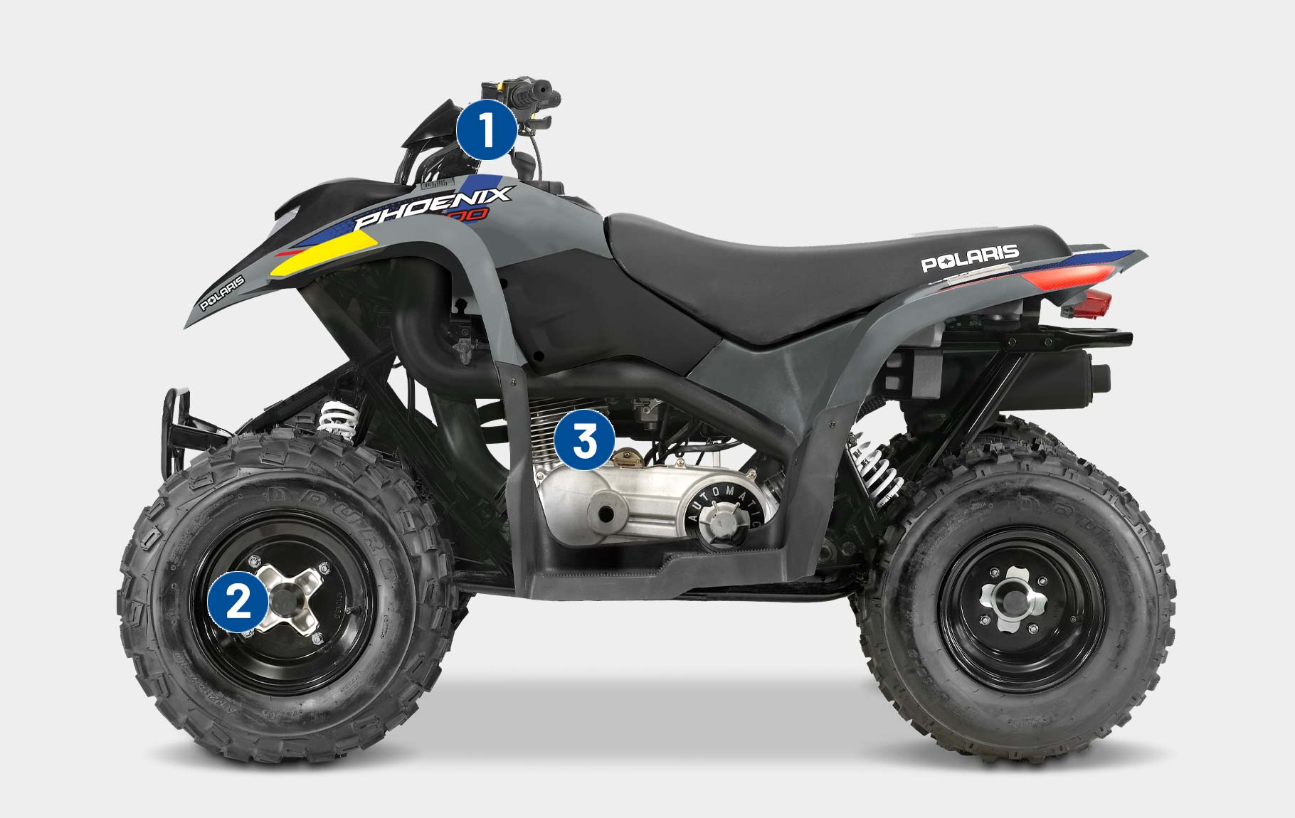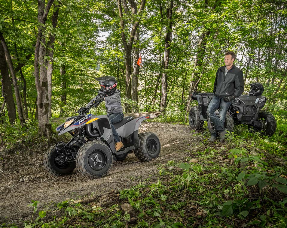 With​ a 196cc 4-stroke engine and easily adjustable speed limiter it allows younger riders to grow with their ATV. Made for riders ages 14+.